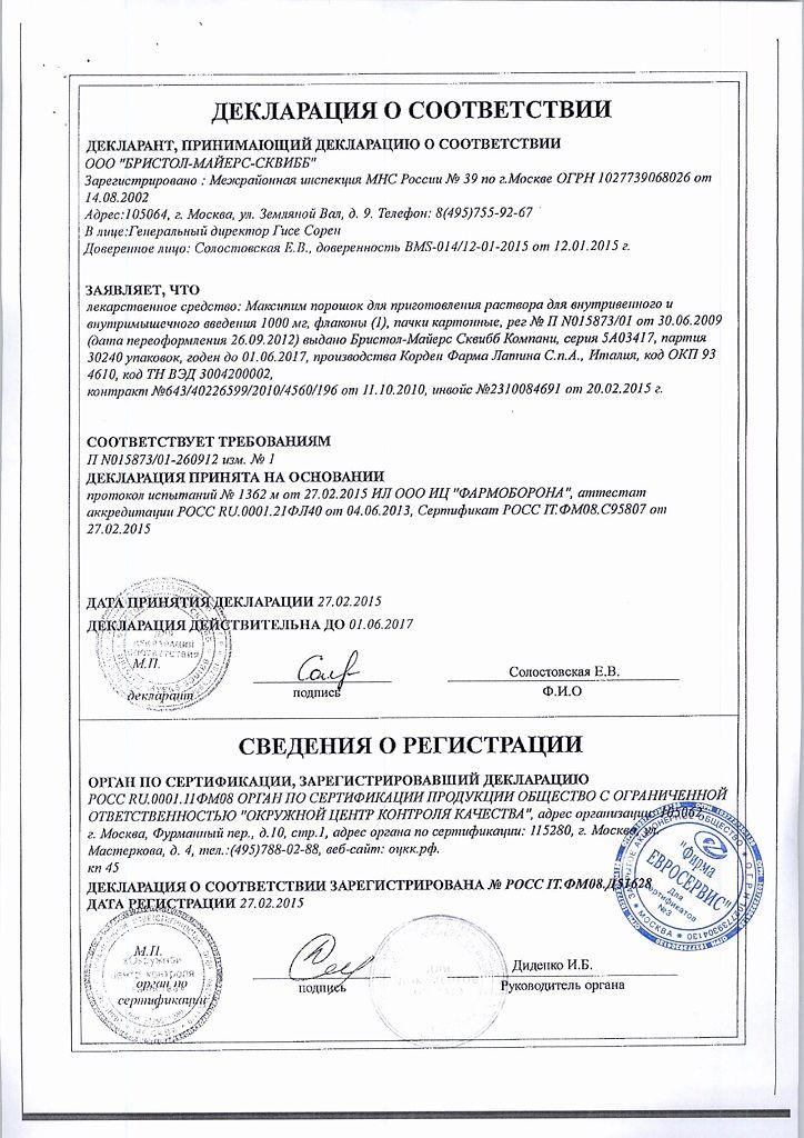 Срок годности препарата Максипим®