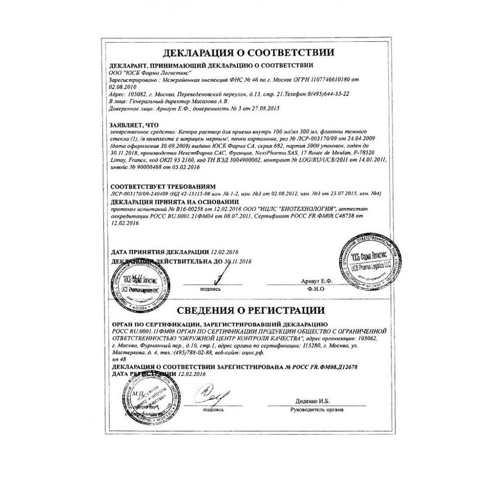 Фото Кеппра Леветирацетам раствор для приема внутрь 100 мг/мл 300мл