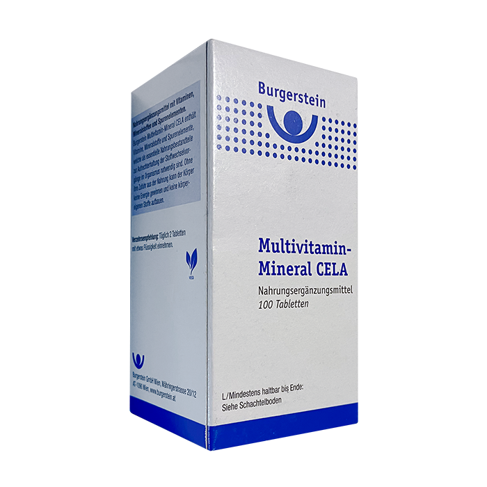 Специальный рецепт обеспечивает наилучшее использование кальция, магния, железа, цинка и хрома за счет использования органических хелатных соединений. Кроме того, препарат содержит натуральный комплекс витамина Е из растительных масел и витамина К. Он поддерживает нормальную свертывающую способность крови. Мультивитаминно-минеральный комплекс CELA от Burgerstein также подходит для диабетиков, вегетарианцев или пациентов с высоким уровнем липидов в крови.