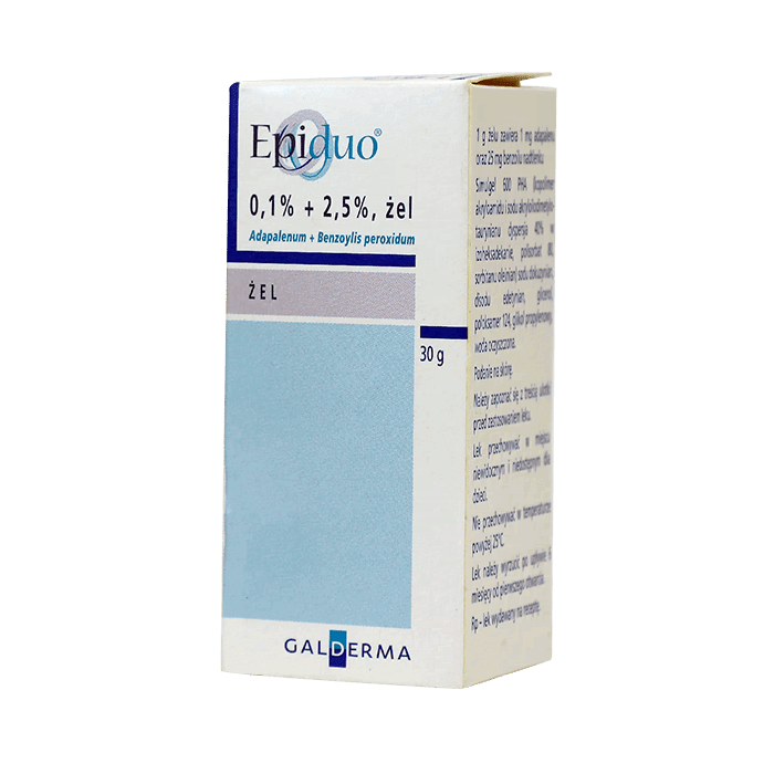 Большинство молодых людей сталкиваются с угревой сыпью, что объясняется изменениями гормонального фона. Молодежь ощущает психологический дискомфорт от прыщей, жирного блеска и прочее. Для лечения таких проблем дерматолог может порекомендовать комбинированное средство Эпидуо гель (Epiduo), содержащий две взаимодополняющие составляющие Адапален и Бензоил Пероксид. Адапален определен как вещество для лечения акне с противовоспалительными качествами. Банзоила Пероксид активен в отношении микробов, которые присутствуют в сальных железах волосяного фолликула. Кроме того, обеспечивает отшелушивающийся эффект, предотвращает избыточное вырабатывание кожного сала.