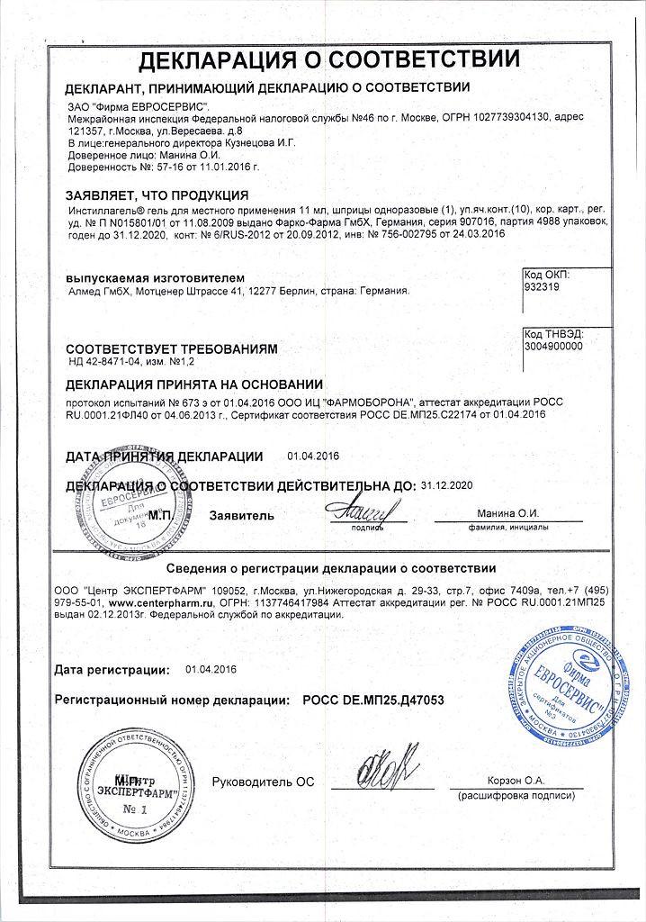 Не рекомендуется использовать Инстиллагель с препаратами, содержащими йод.