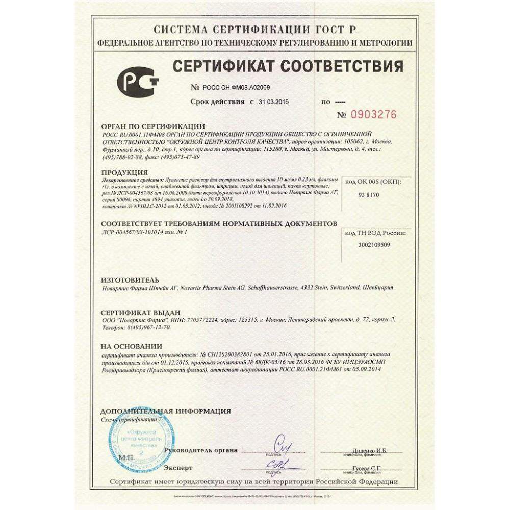 Срок годности препарата Луцентис