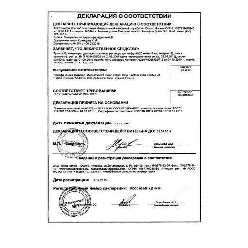Совместимость с другими инфузионными растворами должна тестироваться отдельно; использовать можно только прозрачные растворы.