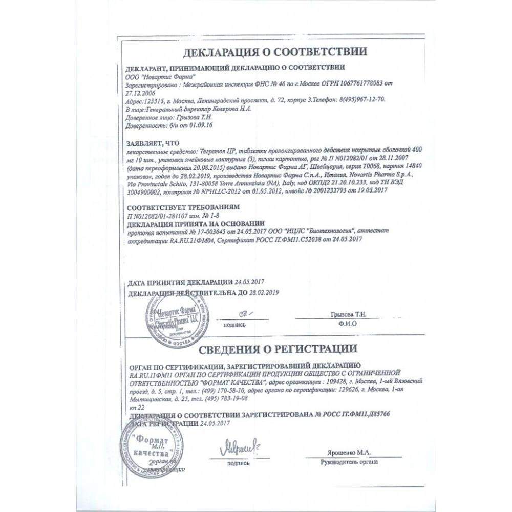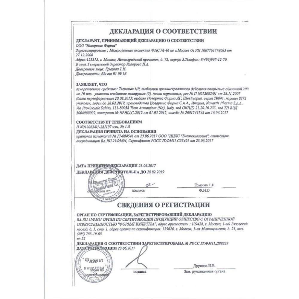 Сертификаты Тегретол ЦР